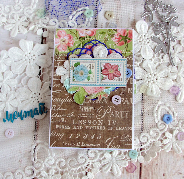Как же я люблю цветочные открыточки! Где есть и кружева и вырезалочки. И суто девичья деталь) Эти невероятные цветочки от Янушка, купить их можно, как и множество разнообразных ножей в магазине для самых творческих людей @_vurybka_ , аккаунт ИГ